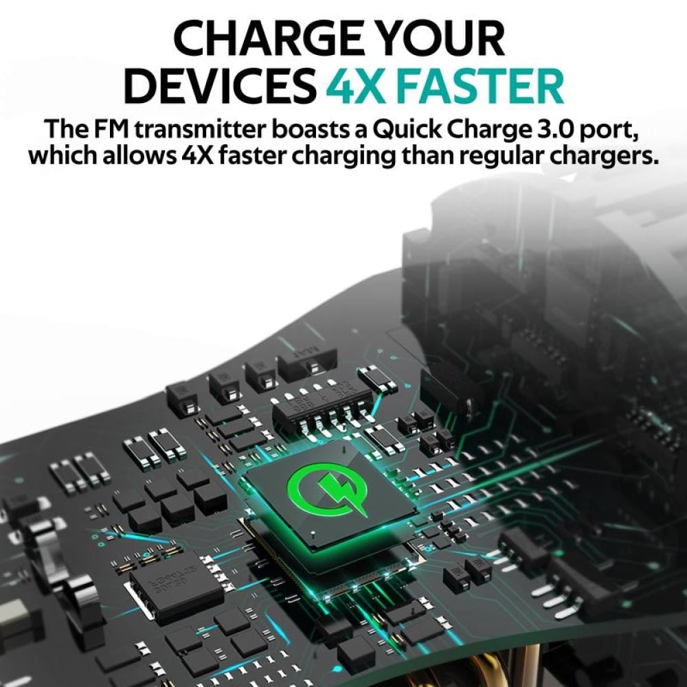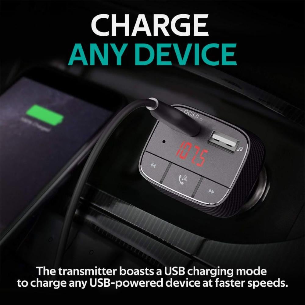 جهاز إرسال FM متعدد الوظائف بتقنية بلوتوث 5.0: جهاز الإرسال FM بتقنية بلوتوث v5.0 ومنفذ شحن سريع QC 3.0، مما يتيح لك بث موسيقى رائعة والبقاء متصلًا أثناء القيادة، مما يجعل تجربتك أكثر متعة وأمانًا.